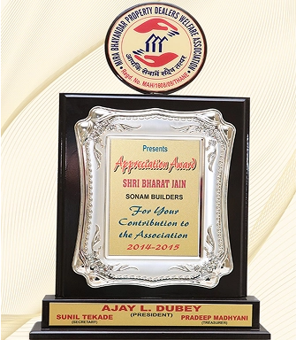 Appreciation for contribution towards Mira Bhayandar Property Dealers Welfare Association in 2014-15