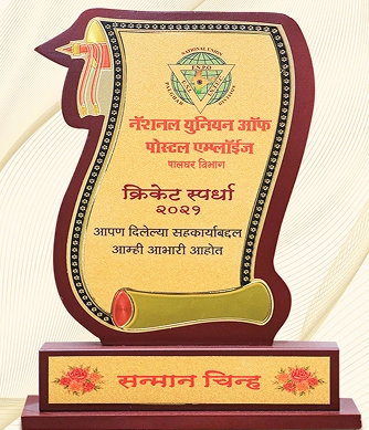 Felicitation for contribution during Cricket Tournament 2021 held by National Union of Postal Employees Palghar