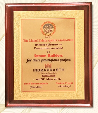 Prestigious Project Award for Indraprasth by The Malad Estate Agents Association